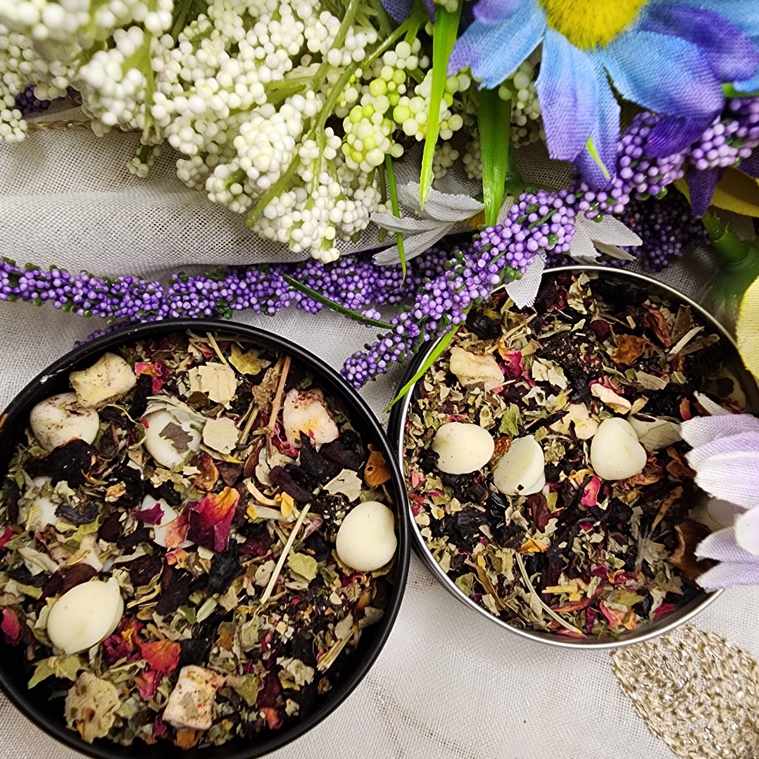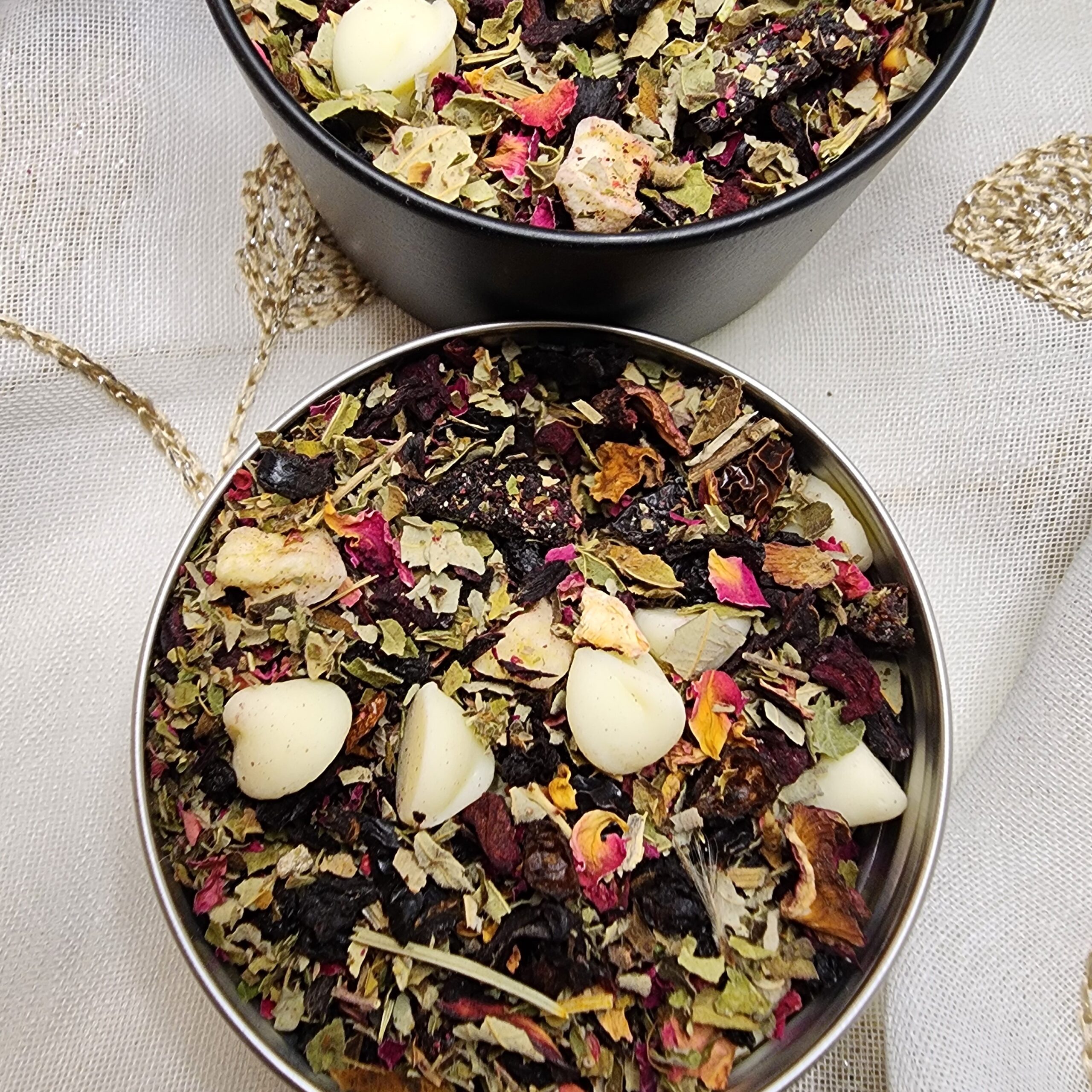 Ingredients: Apple Pieces, Hibiscus Blossoms, Rose Hip Peel, Elderberries, Beetroot Pieces, Rose Petals, Blackberry Leaves, Dried Cherry Pieces, Vanilla Pieces, and Natural Flavoring.